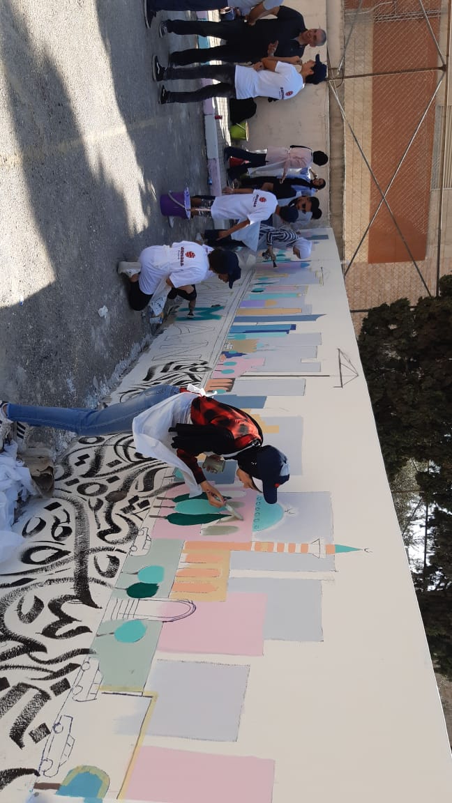 نظمت دائرة تنمية أموال الأوقاف يوم عمل تطوعي داخل حرم مدرسة ابو بكر الصديق الثانوية للعلوم الشرعية بالتعاون مع كلية العمارة والتصميم فى جامعة البترا ورابطة الفنانين التشكيلين.