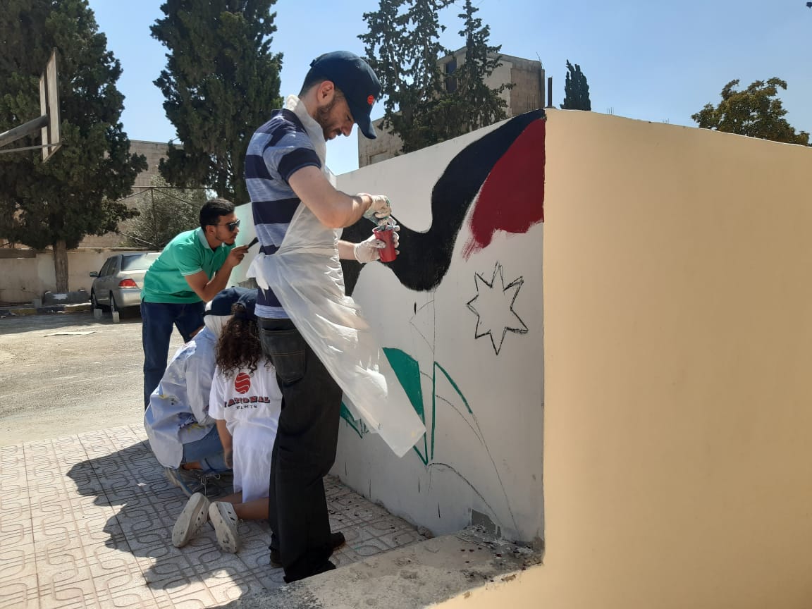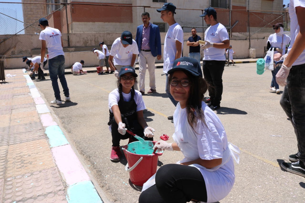وشمل اليوم التطوعي حملة نظافة داخل المدرسة ودهان للجدران ورسم جداريات معبرة لإبراز الجمالية وإستغلال الجدران الفارغة من أسوار المدرسة والتي قام بتنفيذها مجموعة من طلبة جامعة البترا وبرعاية الشركة الوطنية للصناعات الدهان(ناشيونال).