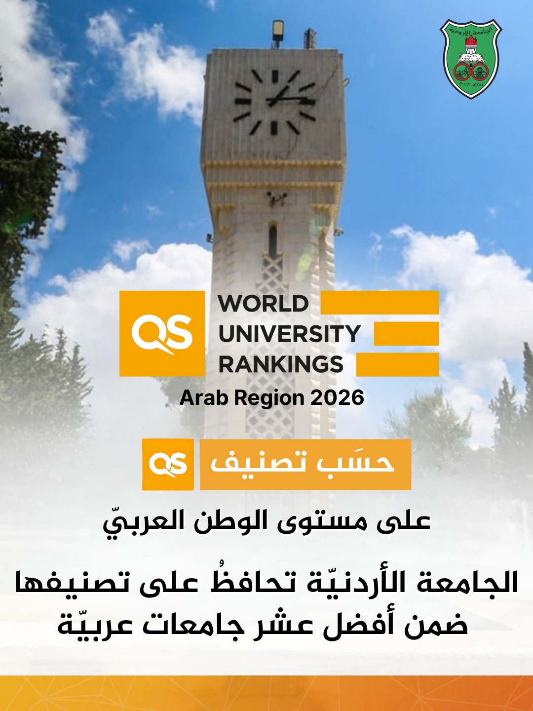 الجامعة الأردنيّة الأولى محليًّا وضمن أفضل عشر جامعات عربيّة في تصنيف QS Arab 2026