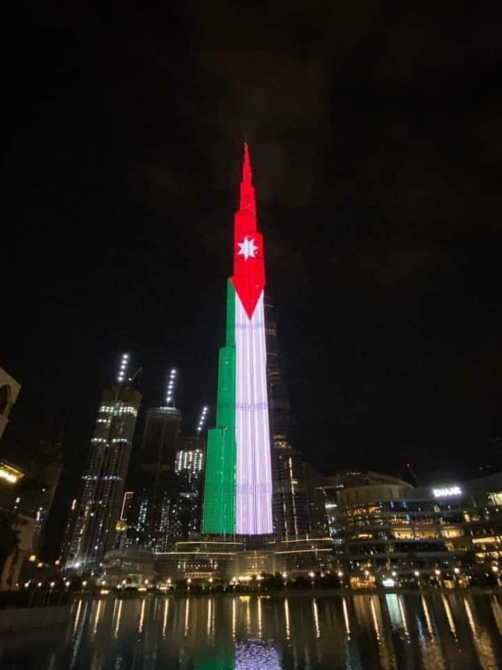 إضاءة أطول برج في العالم "خليفة" بألوان العلم الأردني تزامناً مع مئوية التأسيس