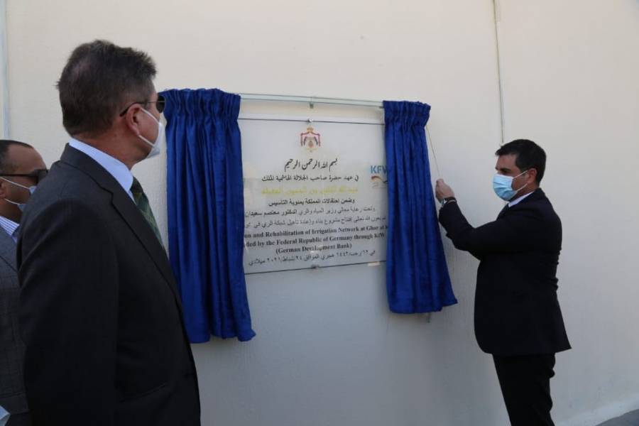 وزير المياه والري والسفير الالماني يفتتحان مشروع إعادة تأهيل شبكات الري و محطات الضخ في غور كبد.