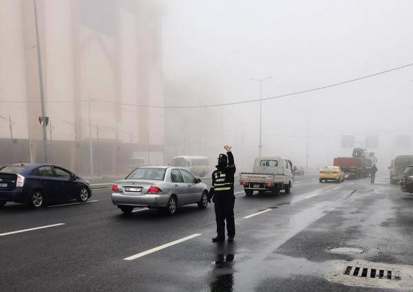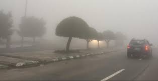 ضباب كثيف وأمطار متفرقة على طريق المطار