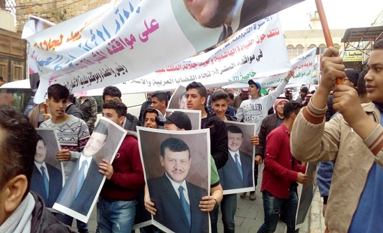 مسيرة شعبية في الكرك تأييدا لمواقف الملك تجاه فلسطين