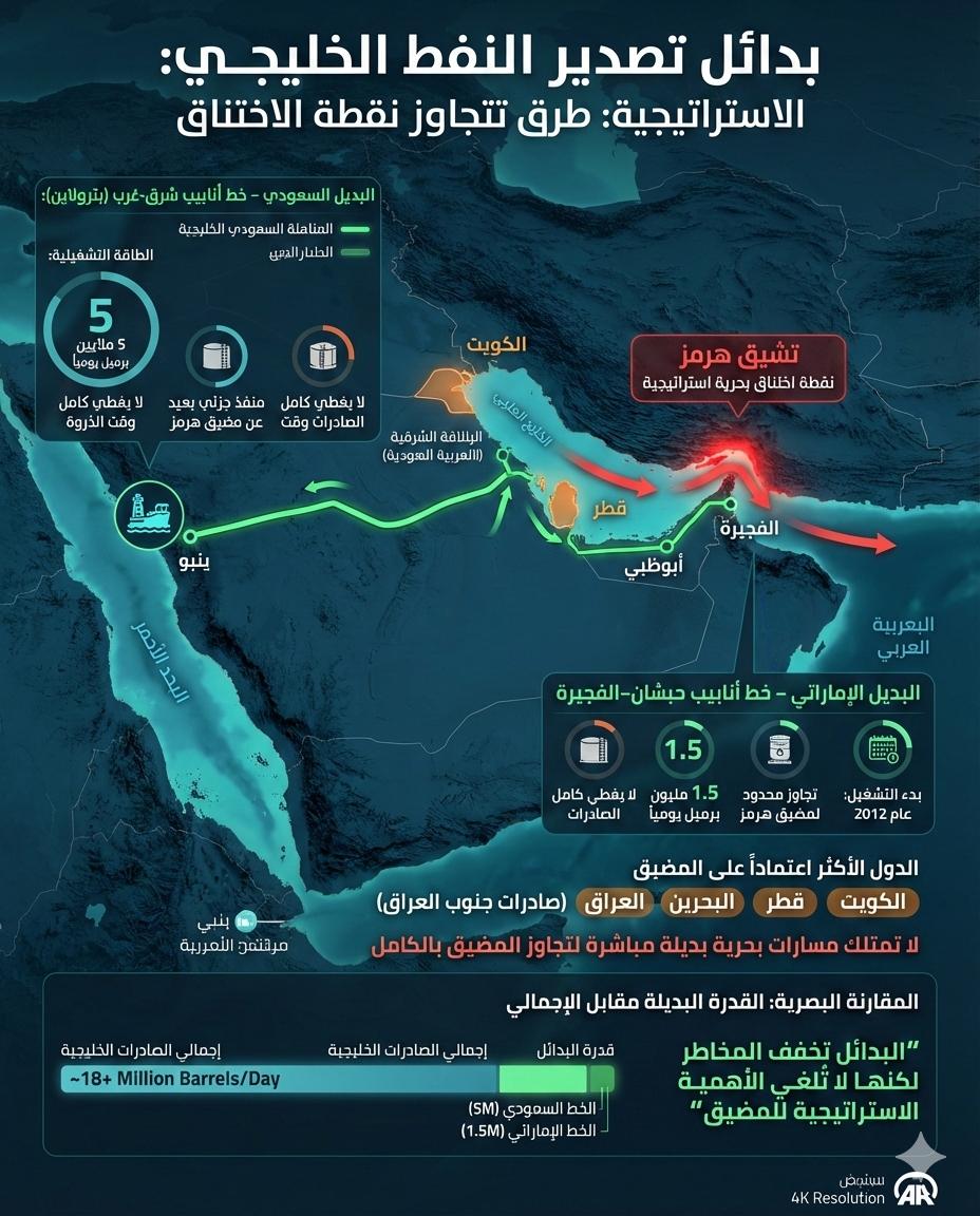 أما الدول الأكثر اعتمادا على المضيق كل من الكويت، قطر، البحرين، والعراق بدرجة كبيرة على المرور عبر مضيق هرمز لتصدير نفطها (لا سيما صادرات جنوب العراق)، إذ لا تمتلك مسارات بحرية بديلة مباشرة تتيح لها تجاوز المضيق بشكل كامل، وبذلك تبقى البدائل القائمة أدوات تقليل مخاطر لكنها لا تُلغي الأهمية الاستراتيجية للمضيق في معادلة الطاقة الخليجية.
