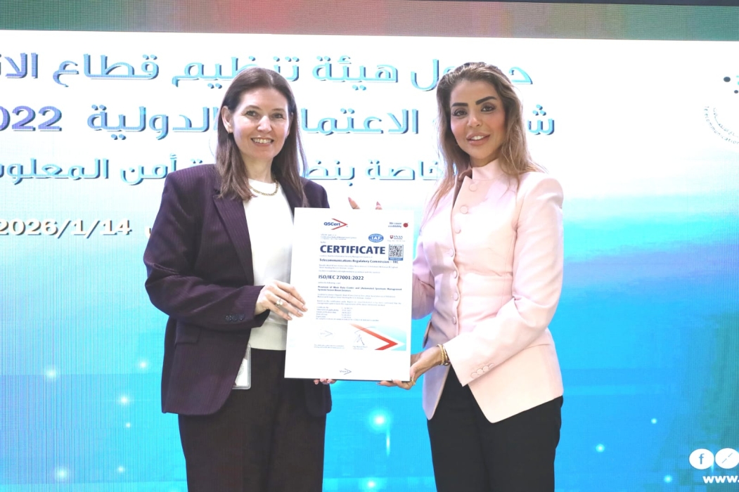 هيئة تنظيم الاتصالات تحصل على شهادة الاعتماد الأوروبية الدولية " الأيزو 27001 : 2022 "