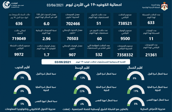 تسجيل 11 وفاة و633 إصابة جديدة بفيروس كورونا في المملكة