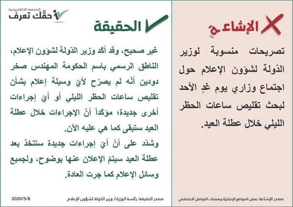 الحكومة: تقليص ساعات الحظر الليلي اعتباراً من أول أيام عيد الفطر