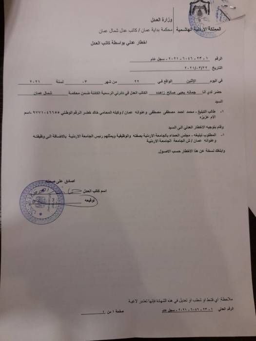 انذارات عدلية لرئيس الجامعة الأردنية ومجلس عمداء الجامعة