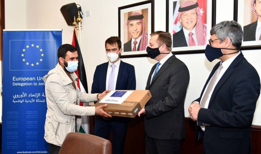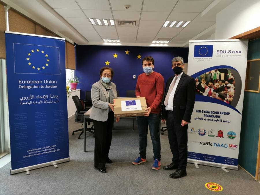 رئيس الجامعة الألمانية تسلم أجهزة لابتوب لطلبة مشروع التعليم السوري/ الأردني