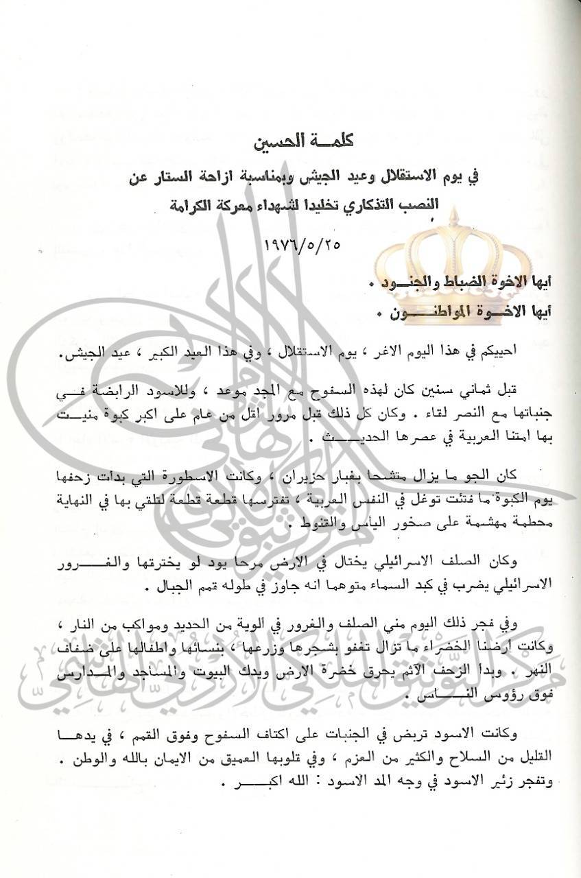 التوثيق الملكي يطلق ضبطا لخطاب الحسين بمناسبة الانتصار بمعركة الكرامة