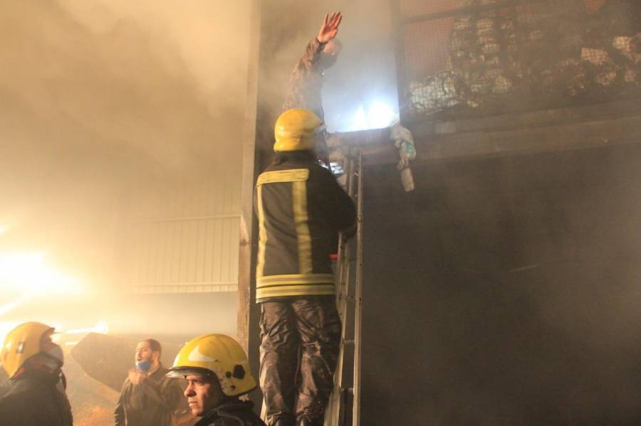 الدفاع المدني يخمد حريق مستودع مواد تموينية في محافظة الكرك