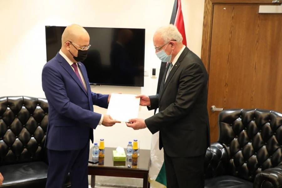السفير العراقي بعمان يقدم نسخة من أوراق اعتماده لوزير الخارجية الفلسطيني