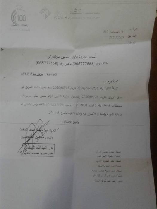 • ماذا وراء إنكار مفوضية العقبة شمول سوق الرواق بالتأمين