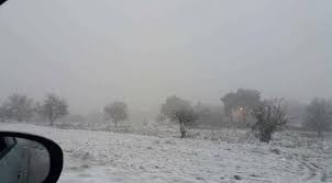 تساقط الثلوج في دير الكهف بلواء البادية الشمالية الشرقية