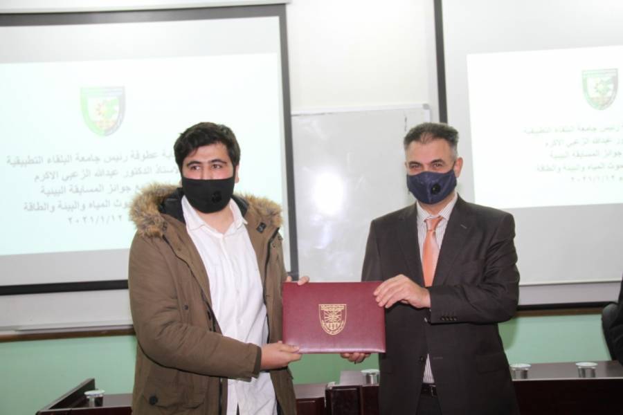 الزعبي يكرم الطلبة الفائزين بالمسابقة البيئية في البلقاء التطبيقية