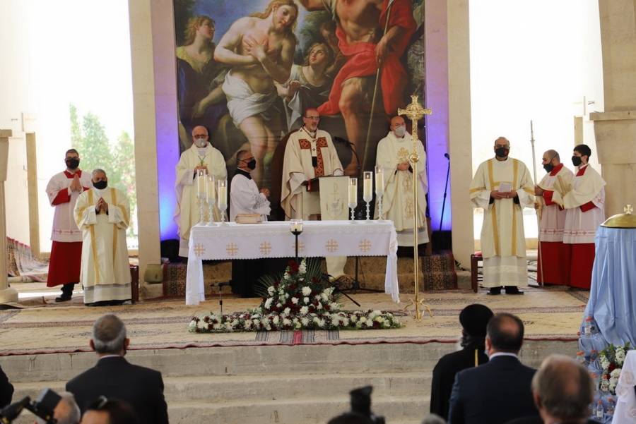 مؤتمر صحفي وقداس احتفالي للبطريرك بيتسابالا في يوم حج الكنائس الكاثوليكية إلى موقع المعمودية - المغطس