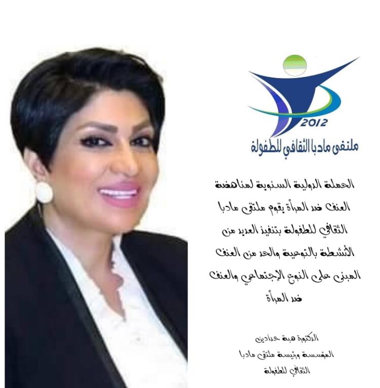 ملتقى مادبا الثقافي للطفولة يطلق حملة إلكترونية حول مناهضة العنف ضد المراة.