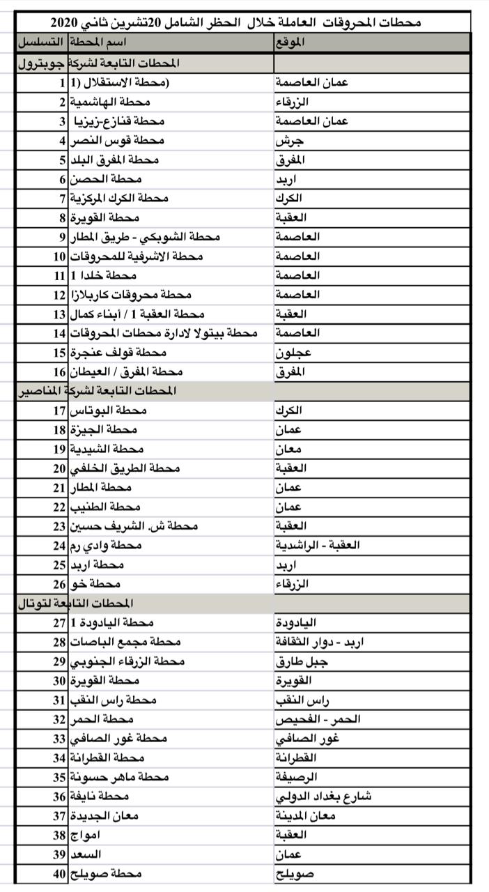 الطاقة تعلن عن 40 محطة محروقات مستثناة من الحظر الشامل