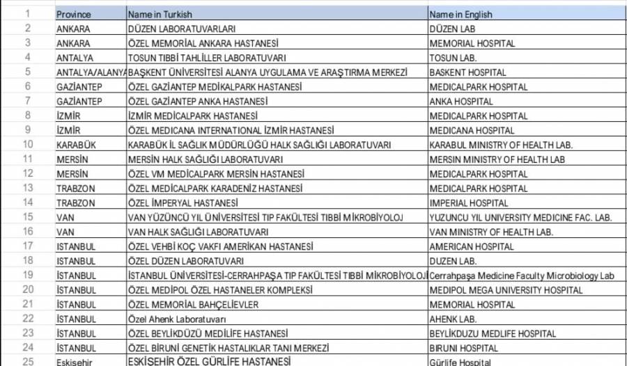 ادارة الازمات تعلن المختبرات التركية المعتمدة لفحص كورونا