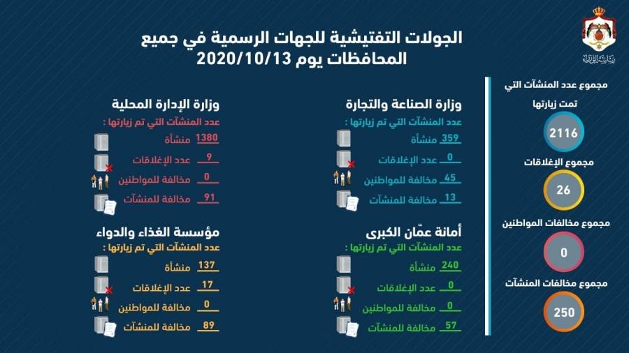 اغلاق 26 منشأة ومخالفة 45 مواطنا الثلاثاء