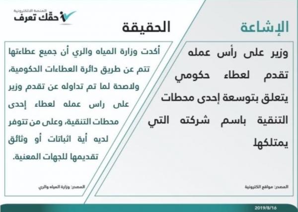 الحكومة تنفي تقديم وزير على رأس عمله لعطاء توسعة محطة تنقية
